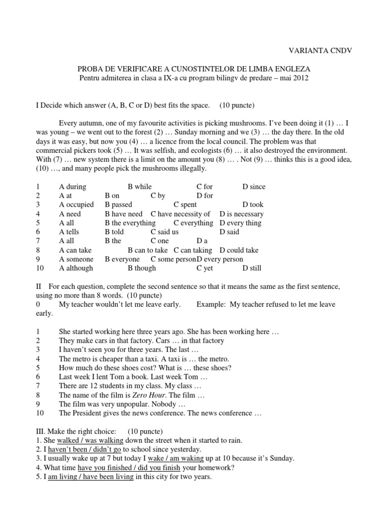 Modele de subiecte admitere clasa a v a. Modele de subiecte pentru examenul bilingv engleza admitere in clasa a ix a 26 04 2018 materiale utile pentru concursul speak out 2018 18 02 2018 past simple 16 12 2017. Hadn t been taught 8. Have been waiting 5.