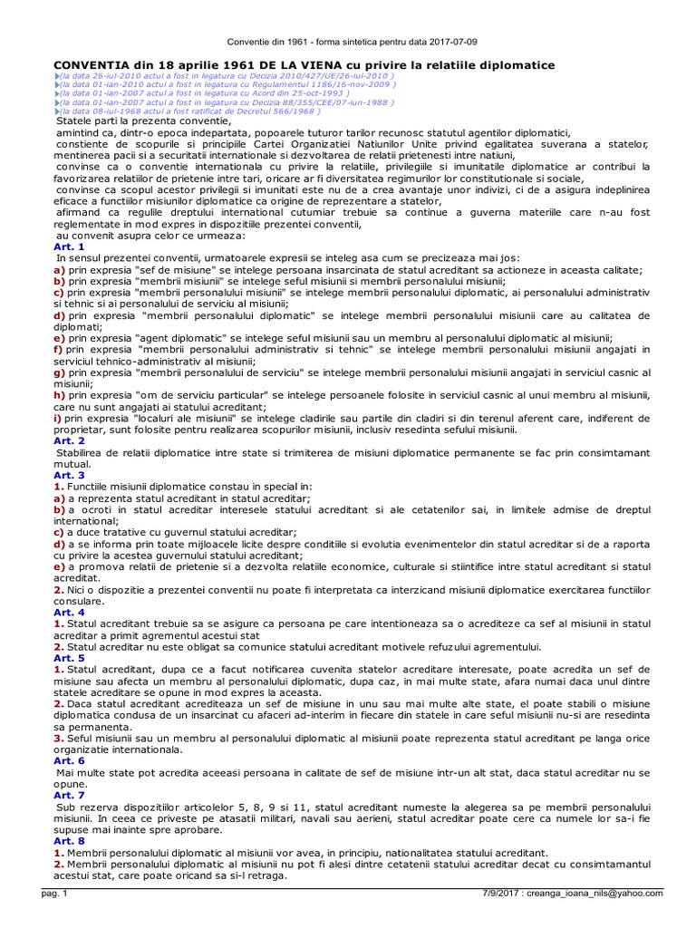 Conventia de la viena 1961 pdf. Convenţia de la viena din 18 aprilie 1961 cu privire la relaţiile diplomatice emitent. Conventia de la viena din 18 aprilie 1961 cu privire la relatiile diplomatice emitent. 89 din 8 iulie 1968.