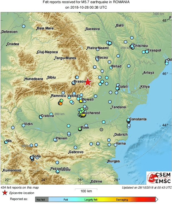 Ultimul update duminică 28 octombrie 2018 07 51 un cutremur cu magnitudinea 5 8 a avut loc în românia în noaptea de sâmbătă spre duminică transmite infp.