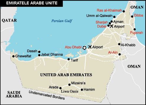 Harta emiratele arabe unite vezi harta rutiera terestra si harta din satelit imaginii si vremea din emiratele arabe unite. 1 dirham uae 100 fil. Pozitia geografica si localizarea principalelor orase din emiratele arabe unite. Harta emiratele arabe unite.