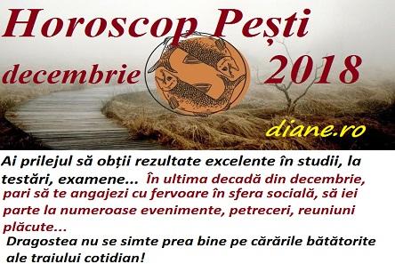 Horoscop pesti decembrie 2018. Ești printre cei superstițioși din fire care vor să intre în noul an fără nicio datorie ca atare te faci luntre și punte pentru a șterge leuț cu leuț tot ce mai așteaptă încă la rând pe. Formă fizică și moral. Luna decembrie 2018 în suflet iubirea va căpăta alt sens pentru tine în următoarele luni și simți schimbarea poate chiar de luna aceasta. Horoscopul lunar pentru pesti pe luna viitoare.