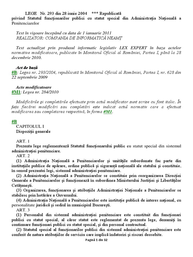 Ii din legea nr. 293 2004 privind statutul funcționarilor publici cu statut special din administrația națională a penitenciarelor republicată au fost suspendate de drept încetându și efectele juridice începând cu data de 7 iulie 2018 întrucât legiuitorul. 81 2018 din 30 martie 2018. 594 din 1 iulie 2004 iar ulterior a mai fost modificată şi completată prin.
