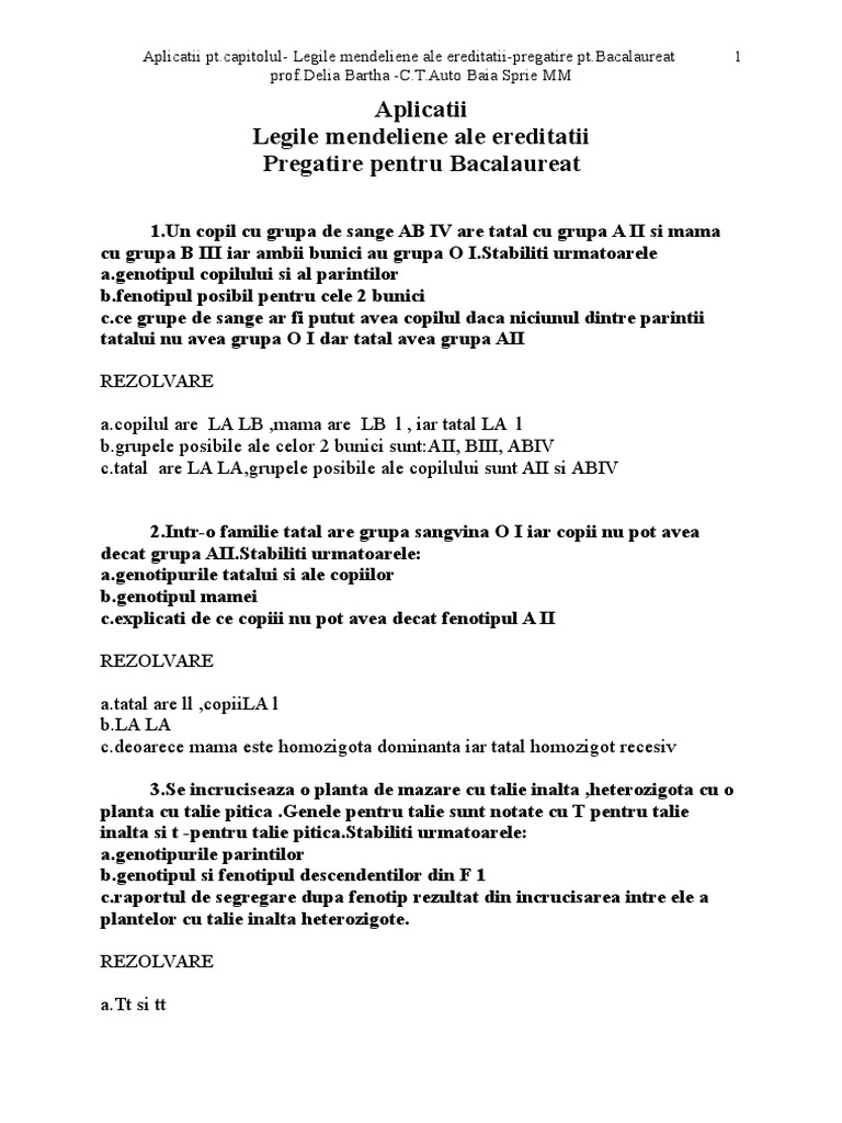 Problemele care vizează legile mendeliene ale eredității abaterile de la legile lui mendel genotipul sau fenotipul unor organisme se regăsesc în partea a doua a subiectului ii la bacalaureatul de biologie vegetală și animală aceste probleme îți vor solicita cunoștiințe de biologie de clasa a ix a iar pentru a fi sigur că stăpânești aceste noțiuni va trebui să exersezi pe. Se vorbeste despre primele legi ale ereditatii descoperite de calugarul gregori mendel cu prof.