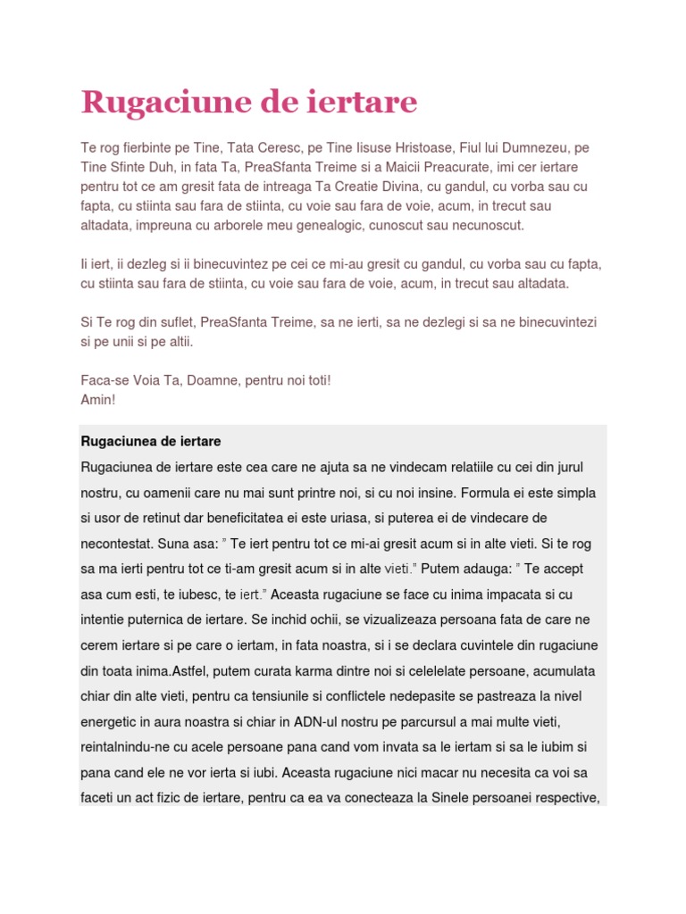 Ci i sfinteste pe dansii cu mila ta si i acopera de bunatatea ta preabunule stapane. Indiferent de cat de greu ne vine sa cerem iertare este esential sa ne gasim curajul de a recunoaste ca am gresit. Dumnezeu este domnul şi s a arătat nouă. Rugăciunea de iertare îți despovărează sufletul și mintea.
