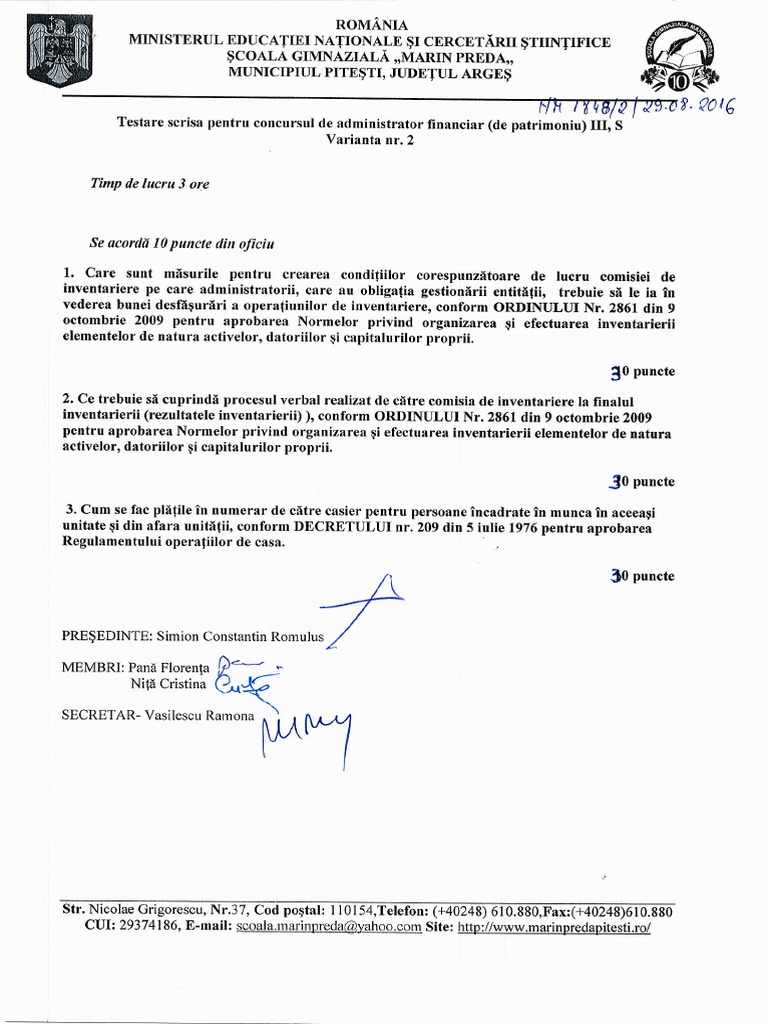 Aceasta se desfășoară pe baza unor teste grilă. Request pdf on researchgate on jan 1 2007 maria andrada georgescu and others published administrarea finantelor publice si a. Subiectul şi baremul concursului pentru ocuparea postului de administrator de patrimoniu. Subiect în situaţia angajării răspunderii disciplinare pentru una dintre sancţiunile disciplinare la alegere precizaţi termenul maxim în care poate fi aplicată cine şi în ce condiţii o poate aplica şi în ce termen şi cum intervine radierea conform legii nr.