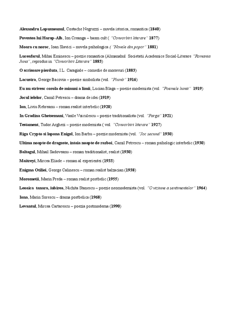 As dori sa stiu daca acestea sunt toate operele care trebuiesc studiate daca s a scos poezia eventual as dori o lista cu toate operele care trebuiesc studiate pentru bac. Pentru a te ajuta ți am pregătit o listă cu operele pe care trebuie să le studiezi listă pe care o poți folosi și ca pe un plan iar astfel vei învăța organizat și eficient. 75 exemple de bilete limba romana oral proba a. Subiectul 3 al bacalaureatului la română în 2020 2021 nu s a schimbat față de anii trecuți echipa liceunet ro a adunat la un loc toate operele literare pe care trebuie să le cunoști pentru bacalaureat în funcție de autor iar profesorii noștri au confirmat lista de mai jos.